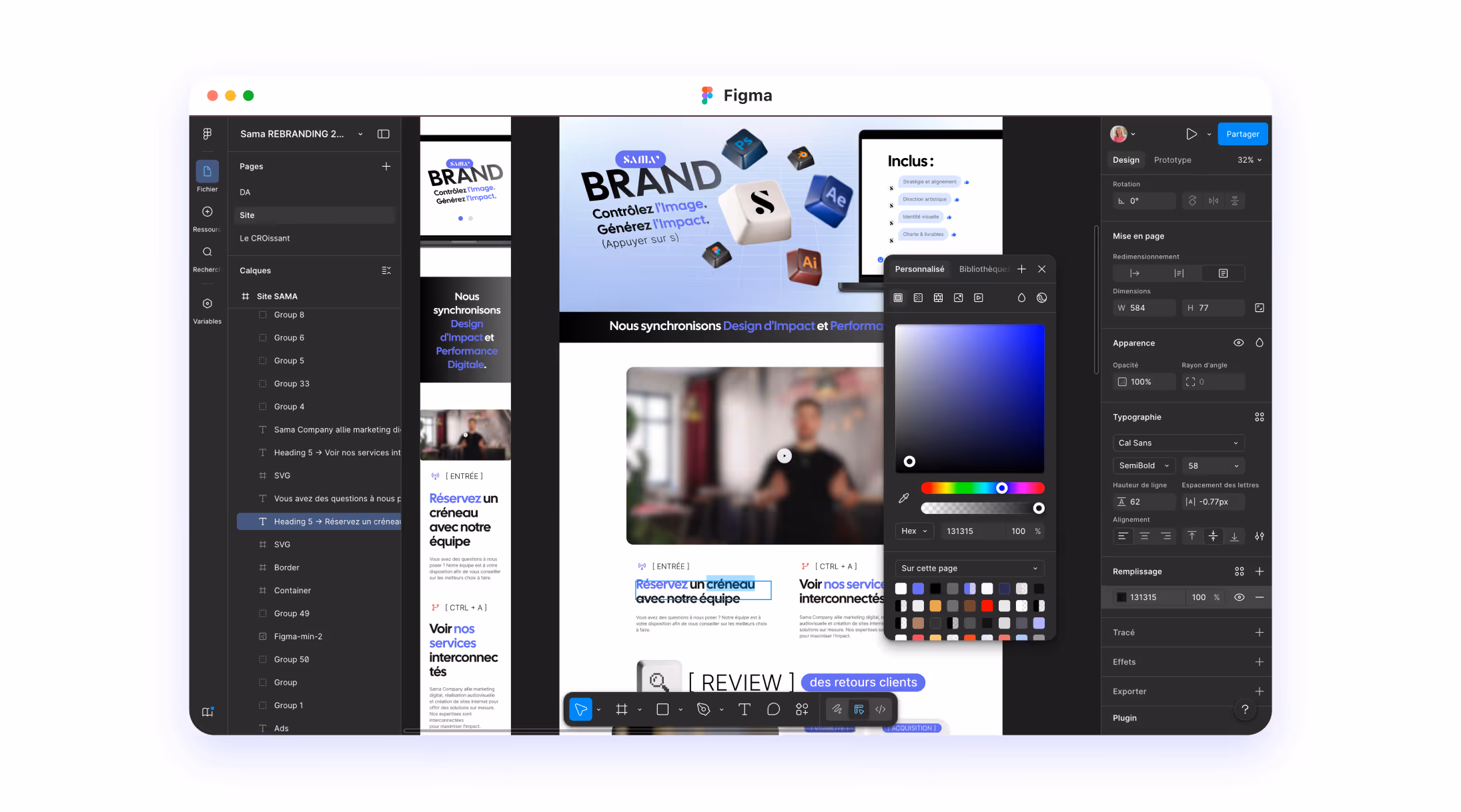 Nous designons une interface claire, impactante et orientée conversion. Navigation fluide, hiérarchie des messages, style graphique cohérent avec votre marque : la maquette n’est pas qu’un "beau site", c’est un parcours qui pousse à l’action.